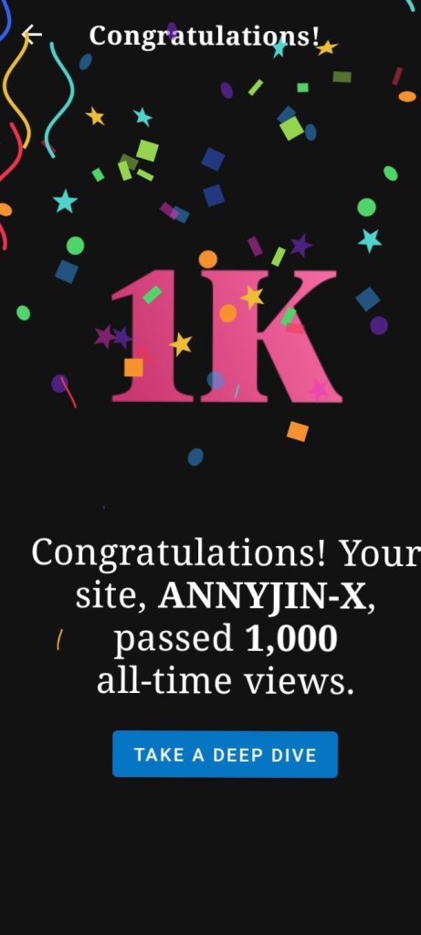 I am totally speechless 😁πŸ₯³!!!It’s all because of you guys….that I could reach 1k views….You guys are really a gift to me as without you guys i wouldn’t have written so many blogs and my website wouldn’t have reached 1k views. So I thank you all for being with me till now and I wish I can get much more love and views.πŸ˜ƒ